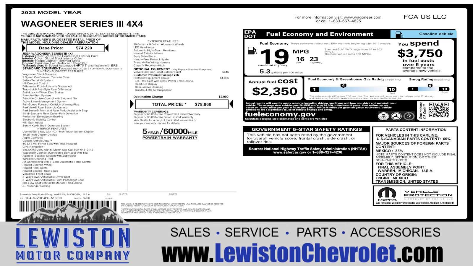 Lewiston Motor Companys 7 Brand Promises: 1) ONE LOW PRICE, PLAIN AND SIMPLE, ALWAYS! 2) NON-COMMISSION PRODUCT SPECIALISTS. 3) ACTUAL CASH VALUE FOR YOUR TRADE. 4) AFFORDABLE FINANCIAL SOLUTIONS FOR TODAY AND YOUR FUTURE. 5) DEPENDABLE SERVICE TO MEET YOUR SCHEDULE. 6) RIGHT VEHICLE AT THE RIGHT TIME. 7) YOU CANT BUY THE WRONG VEHICLE *7-day money back guarantee and a 30-day exchange policy on pre-owned vehicles *Vehicle must be returned in the same condition as it was purchased in.For 7-day money back guarantee, vehicle must be returned with less than 300 miles.*